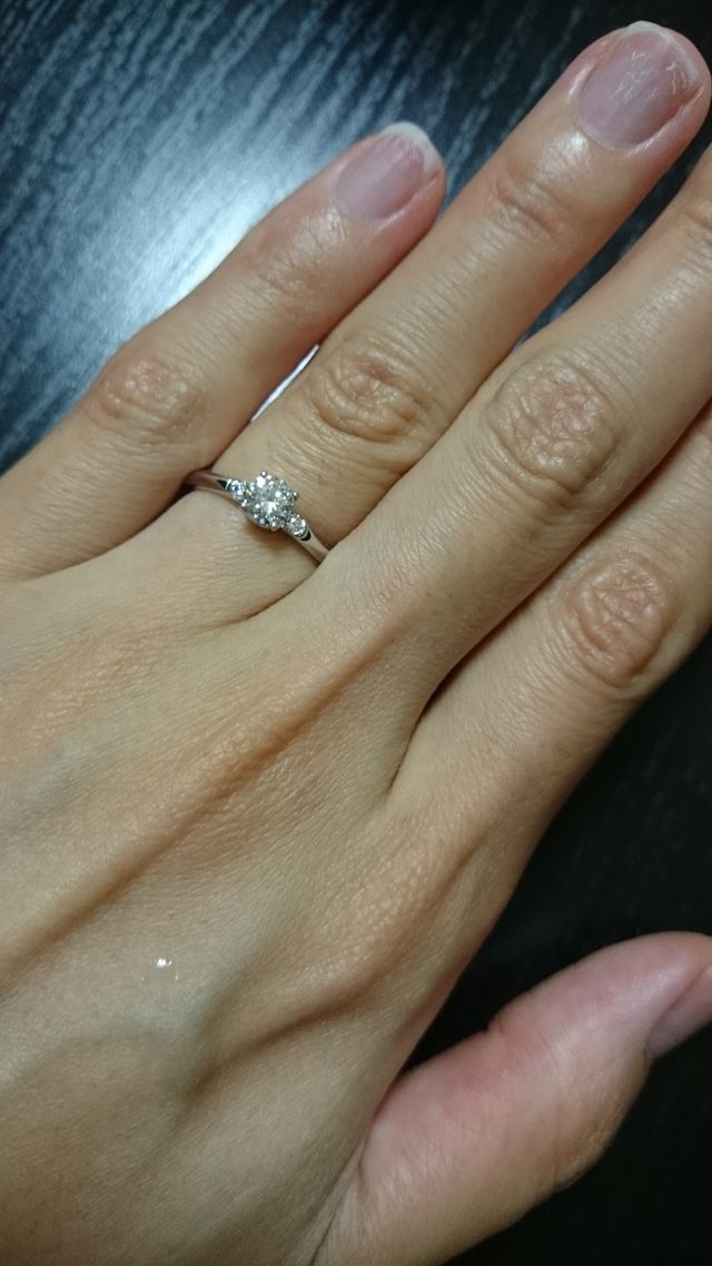 ブランドものにするとどうしても予算内ではカラットやクラリティが下がってしまいます。また主人がどうしても不純物がないものがいい!と言ってくれたこと、何より普段選ばない主人がこれ!と言ってくれたことが決め手になりました。両サイドにダイヤが入っているのもお気に入りです。