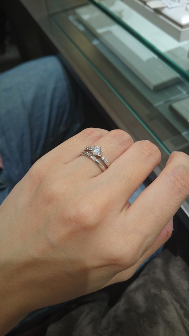 デザインが豊富で、わたしの場合、探していたデザインばっちりのものが見つかりました。今回は婚約指輪を探して伺いましたが、結婚指輪もショーケースに収まりきらないほどたくさんのデザインがあるそうです。