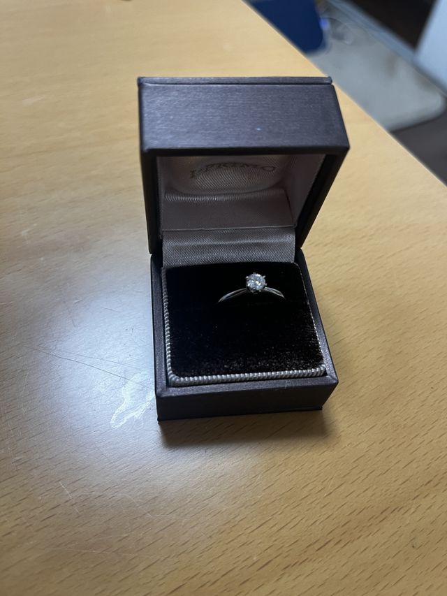 シンプルなデザインで、かつ普段使いしても邪魔にならないところが好きです。ダイヤが取れないか不安で確認しましたが、滅多なことがない限り大丈夫とのことなので同じ不安を抱いてる方はご安心ください。素敵な指輪です。