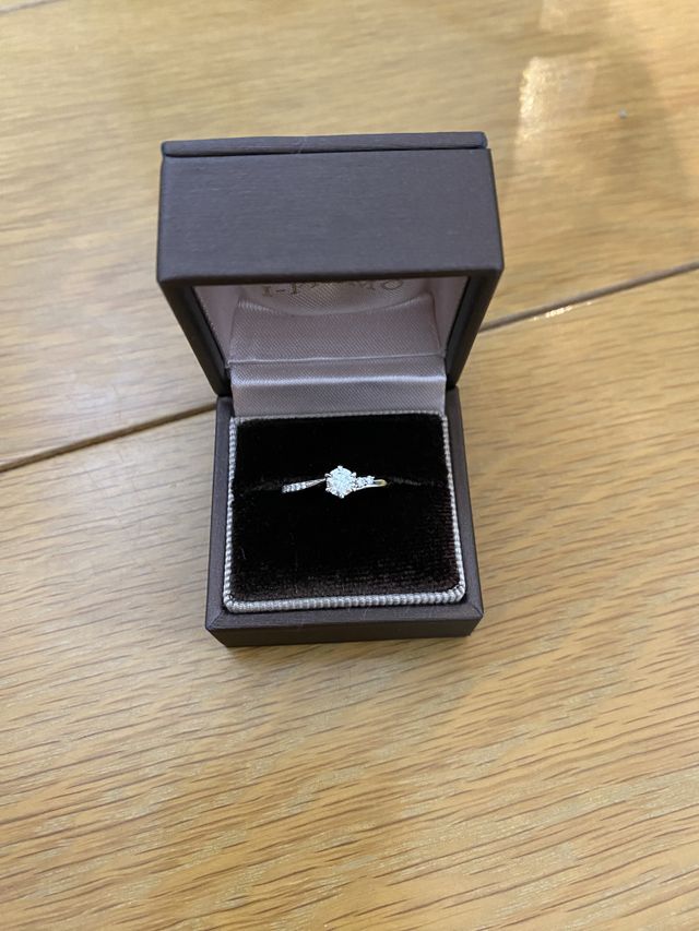 指輪ひとつひとつにモチーフがあり、私が選んだのは中央に引き寄せられるように集まったダイヤモンドは惹かれあい、寄り添ったおふたりをイメージしていると言うものでとても素敵だなと思いました。