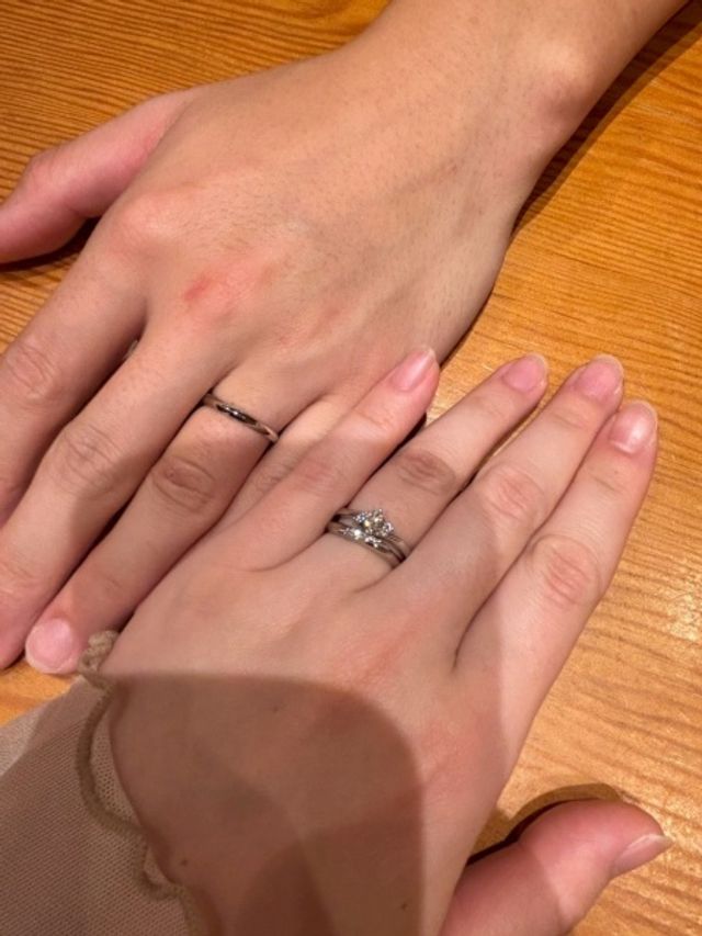指輪の号数でとても悩みましたが、付ける頻度によって変更できる事を知り、最終的にお互いで話して決める事が出来ました。
