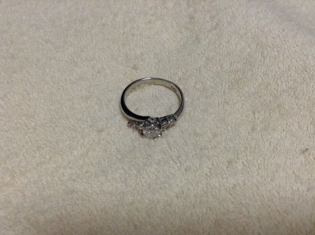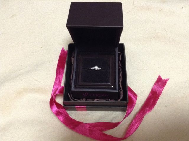 婚約指輪なのでダイヤモンドが付いているものがいいと思いました。指が細めなのであまりダイヤモンドを大きくすると周りの小さなダイヤモンドが見えなくなってしまうのでこの大きさにしました。周りのダイヤモンドが斜めに流れるデザインなので指がとてもスッキリときれいに見えるところがお気に入りです。