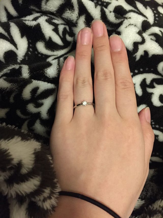 リングの太さもちょうどよく、デザインも長く飽きずに使っていけそうだったのでこちらになったそうです。もらった瞬間のあの小さなケースを開けた時の見た目もとてもよく、感動間違いなしの王道指輪です。