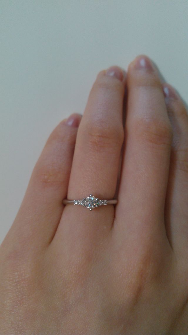 中央ダイヤのカラット数で迷った際にはサイズ違いの見本を持ってきてもらえましたし、納得いくまで楽しく悩むことが出来ました。