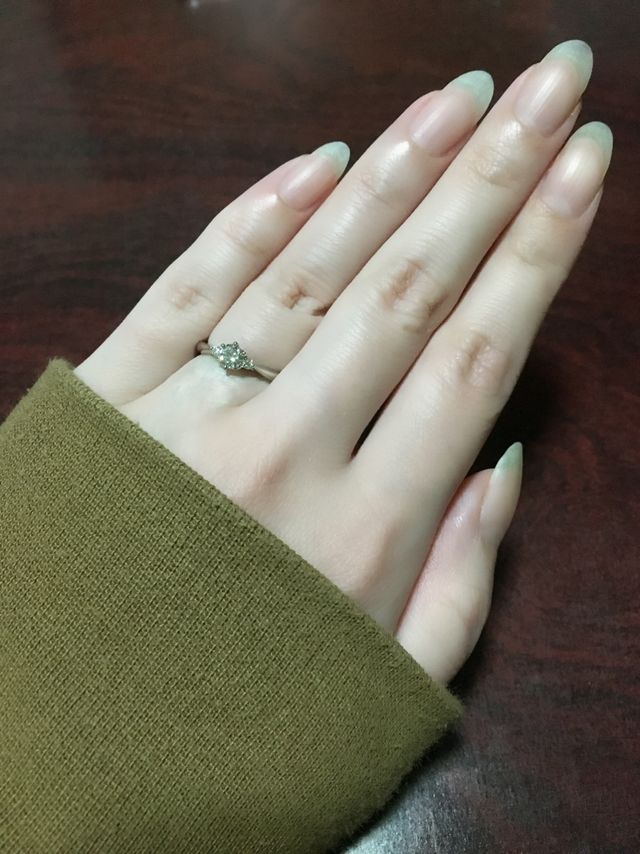 ネットで色々見ていて、サイドから見たときに爪の下にハートの形があるのが可愛くて、お店で実際に色々見ましたが、やっぱり最初に気になったポラリスにしました。ダイヤのグレードもとても良く、予定より大き目のダイヤで予算内で案内してもらえて嬉しかったです。