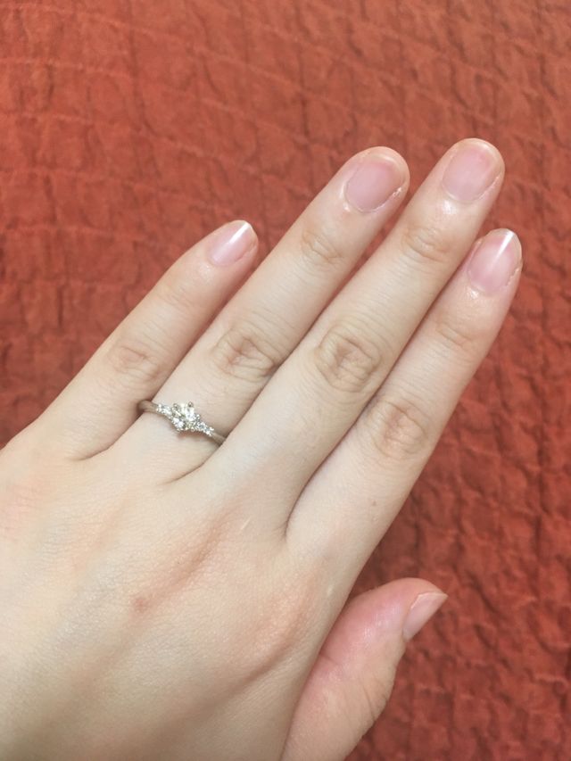 このほかにもウェーブのものなどでも迷ったのですが、婚約指輪としての特別感も大切にしたかったので、ストレートタイプのものにしました。セットリングで、結婚指輪もあったのも決め手です。まだ結婚指輪は購入していないのですが、セットのものを購入する予定です、