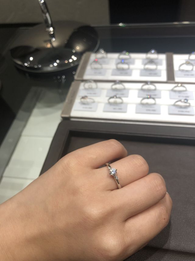 帰省した際に立ち寄ったため、その日購入することはできなかったのですが、東京に戻った時に他の店舗ですぐに気に入ったリングを出したもらえるようにリングの型番だけでなくおすすめポイントや魅力等を写真に細かく書き込んでくださったので、非常に良い接客をして頂けたなという印象でした。