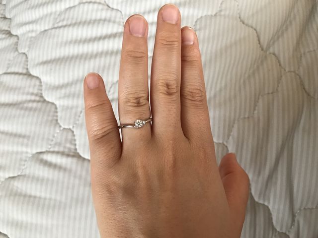 指輪が斜めになっているデザインと、とても綺麗なダイヤモンドに心を奪われました。ダイヤモンドの大きさもちょうどいいサイズで、本当に素敵です。何度も眺めたくなります。素敵なデザインだと思います。