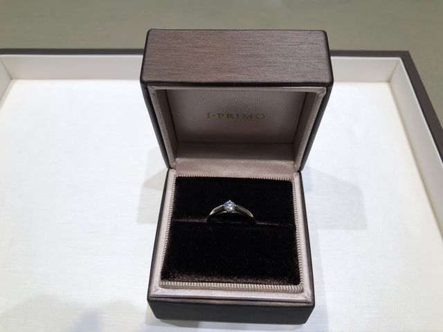 王道の婚約指輪です。4つの留め具でダイヤが包まれています。お店で色々なデザインを試してみましたが、やはり王道の婚約指輪に惹かれ、これに決めました。実際につけてみると、ダイヤがとても一粒のダイヤが目立ってとってもきに行っています。
