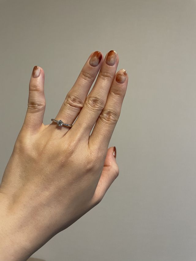 婚約指輪の爪の部分の形が気に入る指輪がなくて悩んでいたのですが、こちらの指輪は横から見たときの爪のデザインがチューリップのようで可愛くて一目惚れしました!爪がとても小さく、付けてみるとダイヤがそのまま指輪に付いているように見えて綺麗です。