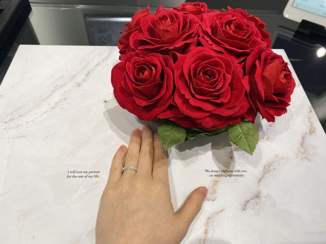 店内は綺麗で、接客もとても丁寧で良かったです。最初にドリンクを出していただいたり細やかな気配りも完璧でした。最後に指輪とともにロゴ前で写真をとるサービ