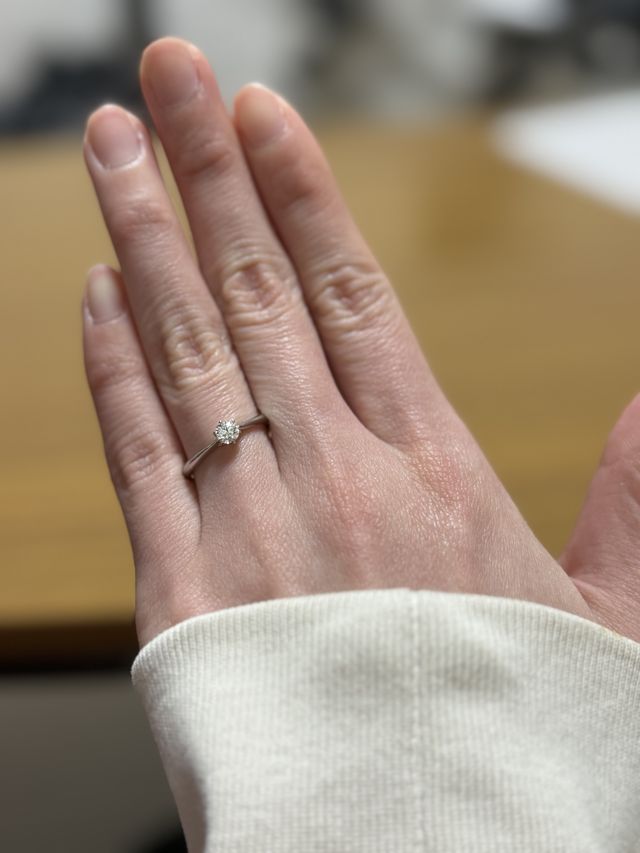 ダイアモンドのカットがとても綺麗です。どの角度からでも美しいです。リングはストレートで、シンプルな形を選びました。いつまでも飽きないスタイルで、今後も、大切な時につけたいと思ってもらえるような物を選びました。