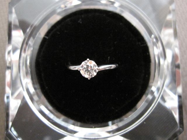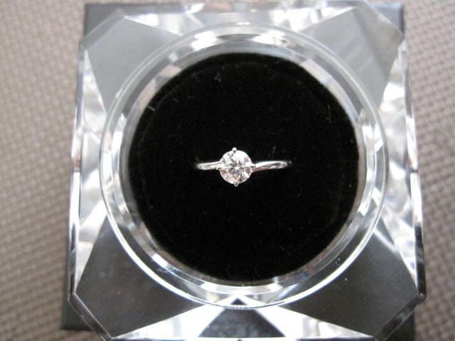 購入する前にいろんなお店を見て回りましたが、ダイヤモンドの輝きがずば抜けて違いました。どの角度から見てもキラキラ輝いていて、実際のカラット数よりダイヤがはるかに大きく見えるので、一目見て「これしかない」と思い、決めました。