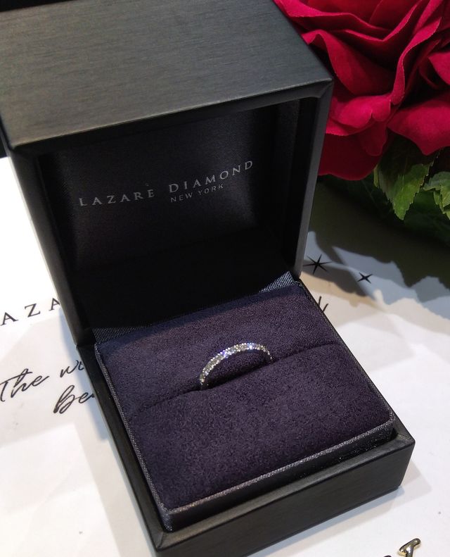 とても繊細なつくりに惹かれました。細身なので派手にはなりにくいものの、ダイヤモンドが屋外でも室内でもキラキラとてもきれいに輝いています。重ね付けをしたい時にも、どんな指輪とも合わせられると思いました。