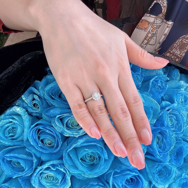 流行りのデザインかつ、他社と比べてデザインがすごく綺麗です!全体的にキラキラしていて、つけているだけで気分が上がるデザインになります!老後のことも考えるとすごく良いデザインだと思います!真ん中のダイヤに周りの囲みダイヤ、さらに大きく感じますね!