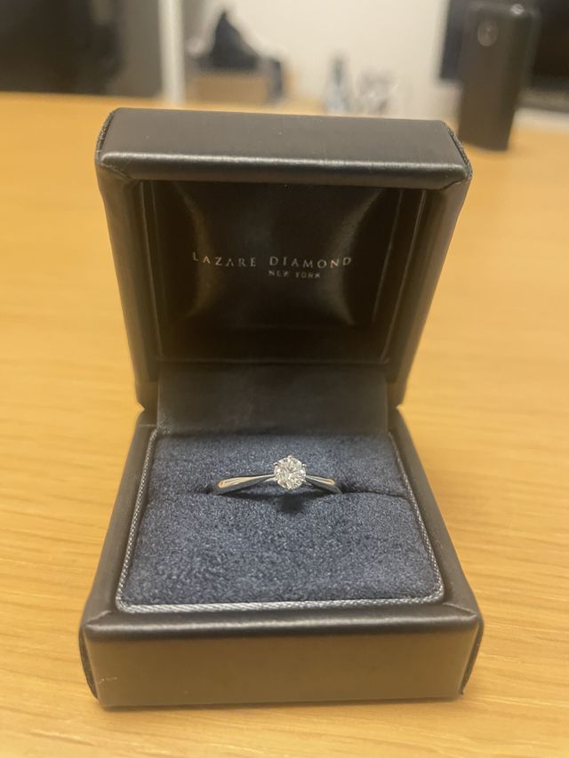決してとびきりダイヤモンドのサイズが大きいと言う訳では無いですが、彼女の指にぴったりな素敵な指輪だと自負しています。普段使いもできるようなシンプルなデザインになっているので、今後も見る機会が増えればいいなと思っています。