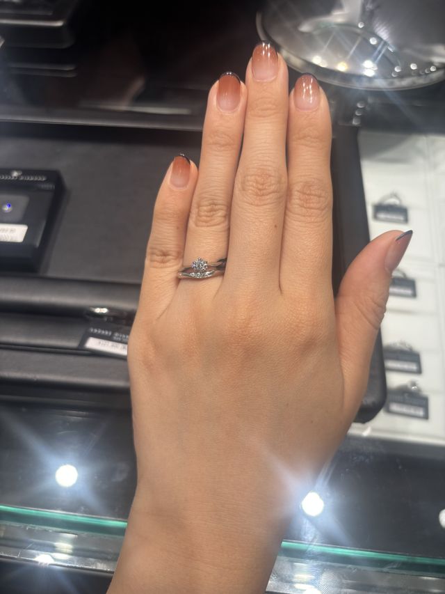 婚約指輪と結婚指輪をセットでつけた時の見栄えも良く、特に婚約指輪のダイヤモンドの輝きが魅力的で虜になった。