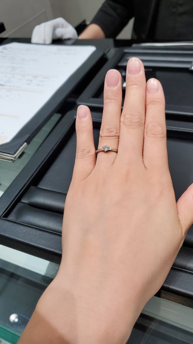 お店はシックでとても綺麗です。店員さんも優しく、色々質問できました。実際につけた時、野外ではどのような見え方をするのか気になり、指輪を試着した状態でお店の外に出て、自然光の中での見え方を見せてくれました。