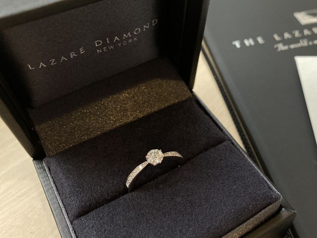 真ん中のダイヤモンドにかけてキュッと細くなるリングのデザインが可愛いくてお気に入りです。リングのメレダイヤもキラキラで全体が綺麗に輝きます。ドラマで石原さとみさんが貰っていたデザインだったことを知って更に嬉しくなりました。