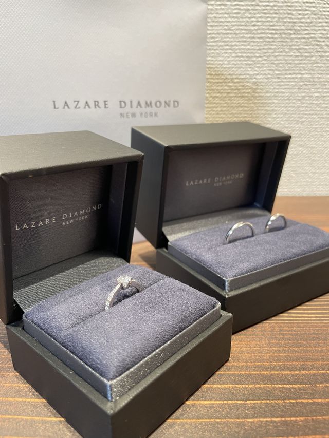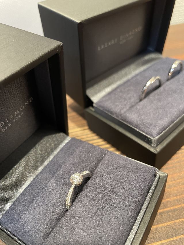 何軒か回りましたが、最初にお伺いしたラザールさんの指輪のデザインが一番しっくりしましたのでこちらに決めました。質感も高級感があり満足です。