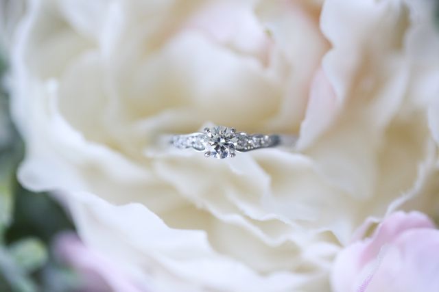 もともと婚約指輪はいらないと思っていたのですが、俄の結婚指輪を見ていてこの花麗を見つけてしまいどうしてもほしくなってお願いしました。センターのダイヤの両側のメレダイヤのデザインがとてもかわいく、一緒に選んだ結婚指輪(雪佳景)との重ね付けもばっちりです。
