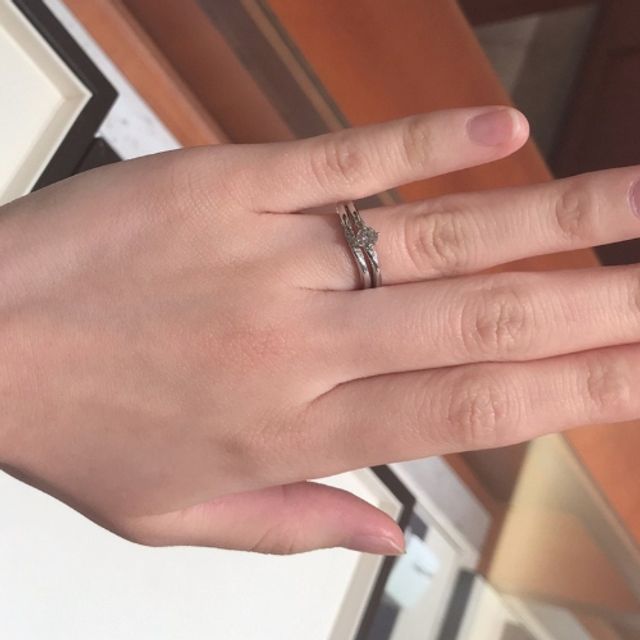 朝の風景をイメージしたセットリングであり、シンプルで上品なデザインが気に入りました。セットリングなのでフォルムが綺麗に一致しており、指への馴染みも良いので素敵です。ダイヤモンドの輝きも洗練された感じで良いですね。