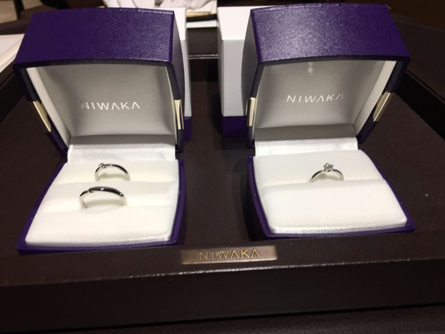 主人が俄の指輪を気に入っており、私もカタログを見る中で、結のデザインを気に入ってました。つけてみると馴染みが良かったのに驚きました。ほんとは婚約指輪は別でと思ってたのですが、婚約指輪はダイヤの先端が横から見えてたり台座のデザインも珍しく、セットにしてつけたらかわいかったので、ここで購入しました。周りに俄で購入された方がいなかったので、珍しいデザインに心が躍ります。