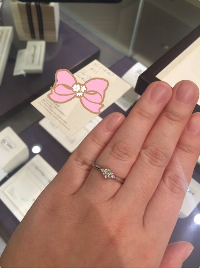 中央のダイヤの左右にメレのついた、ストレートラインの指輪というのが私の希望でした。