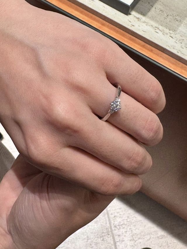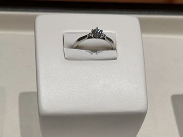 360度どこから見ても可愛いデザインに目を惹かれました。横から見た時の透かし模様や、3つのダイヤが並ぶデザインが華奢ながらも存在感があり、上品で可憐で美しかったです。細いリングで指が長く見えると思います。