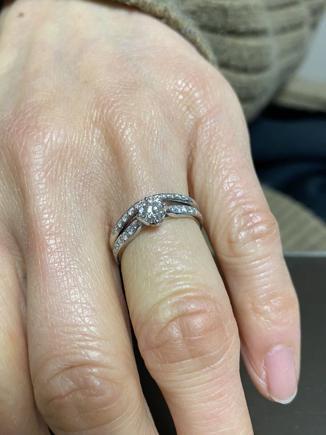 色々見せて頂き、最も彼女が気に入ったデザインを選ぶことにさせて頂きました。リングの周りにダイヤが散りばめられた指輪がゴージャスで高級感がありキラキラして彼女にぴったりな感じでした。ダイヤの大きさも大きすぎず小さすぎずで良かったです。
