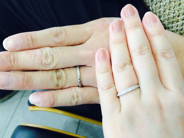 男性側もブラックダイアがワンポイントありオシャレな指輪だと感じました。