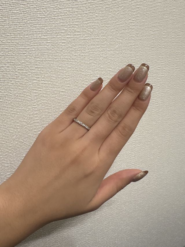 エタニティリングにしてもらったことによって、ふだんのお出かけや冠婚葬祭などのタイミングでも付けていきやすところが気に入っています!