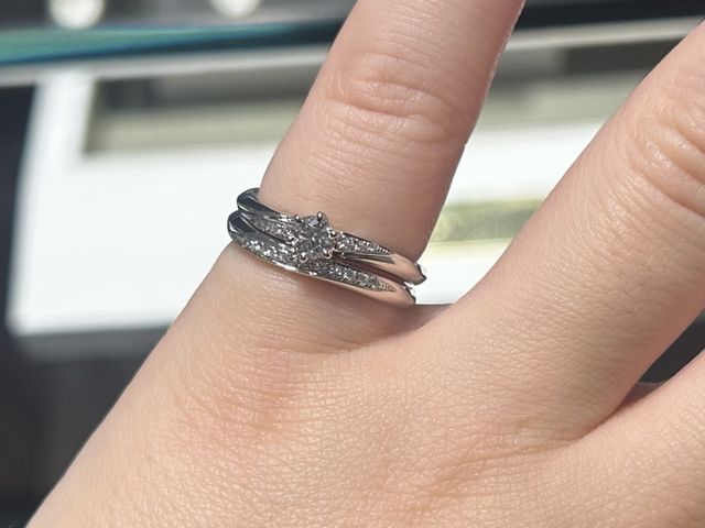 セットリングなので、重ね付けしたときに2つの指輪のデザインが合っていて素敵です。