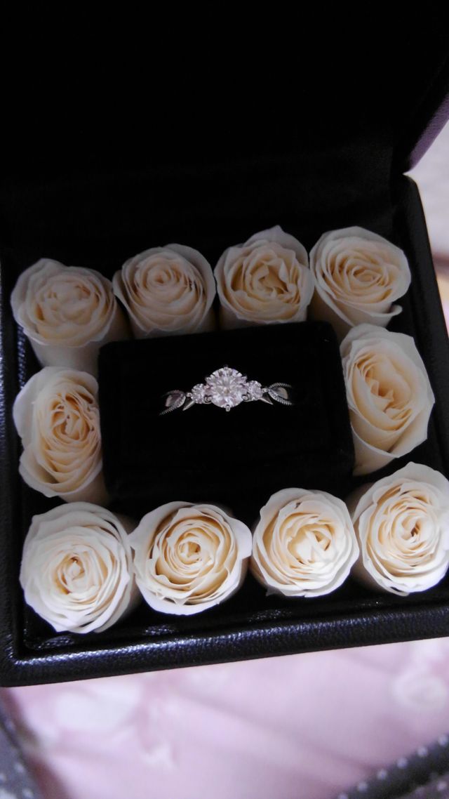 問屋系、ファインジュエリー系、ブライダルメーカー系のダイヤ価格は系統別にそこまで差がないので、デザイン重視で選びました。出来上がりを確認しても、土台のミル打ちがとても綺麗だと感じます。メレダイヤがついているので、見栄えも良いです。
