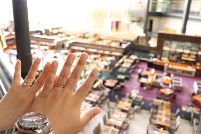 女性用についてはもともとセットリングを探していて、着用時のイメージもしっくりきたため、こちらの指輪に決めました。マリッジリングは、あまり人とかぶらないデザインで、ダイヤモンドの存在感があり、華奢なデザインも気に入りました。