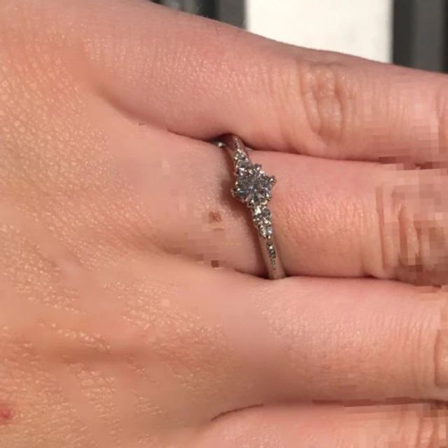 メレダイヤが入ったエンゲージリングを探しておりこちらのリングに決めました。またサイドには装飾としてミル打ちがなされており、センターのダイヤの輝きをより引き立てている印象で気に入りましたね。指への装着感もしっかりとしています。