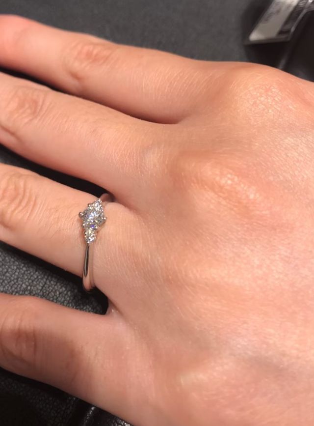 サイドにもダイヤモンドのついたデザインが気になっていたのですが、サイドのダイヤモンドもメインのダイヤモンドに負けない輝きを放っていました。シンプルすぎないデザインのものを探していたので、良かったです。
