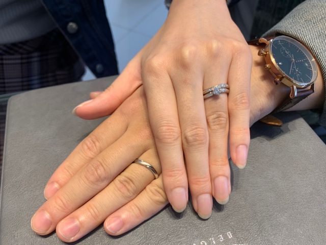 ウェーブのデザインで探していましたがお店で試着させて頂いて感動してしまって決めました。まずダイヤモンドの輝きが圧倒的だと感じました。また、デザインも上品で美しく決め手となりました。コンシェルジュの方の提案力も決め手のひとつです。