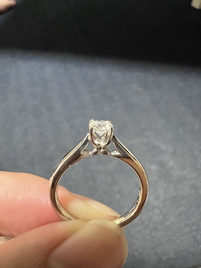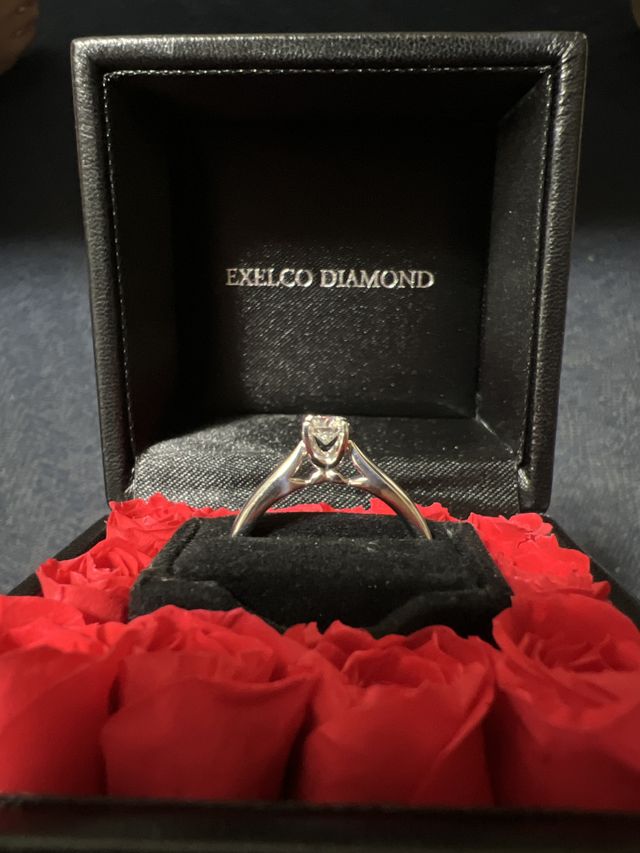 ダイヤモンドの石を先に購入してプロポーズしました、その後二人でリングを選びました。指輪の形にした後もダイヤモンドの石の形が立体的に分かるところに魅力を感じ、この指輪を選びました、ダイヤモンドの下に小さなダイヤモンドを配置してあることで、より複雑な光の散乱を実現しておりいつでも眺めたい輝きを放っています。