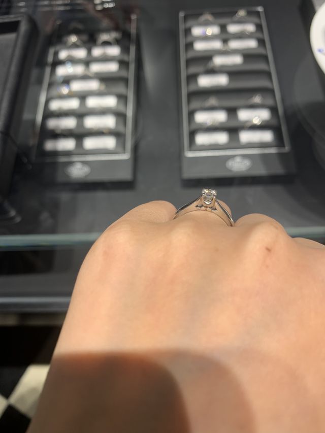 海外ハイブランドから国内ブランドまで10店舗ほど周りました。ダイヤがとても綺麗に見えた事、そして、ダイヤを輝かせる為に工夫された台座だという事が決め手です。台座の下に小さなダイヤがあります。横顔も花束のように見えて可愛いと思いました。ダイヤのカラット、クオリティ両方に拘りたかったので、同じ値段でハイブランドよりかなりグレードを上げたものを購入できました。