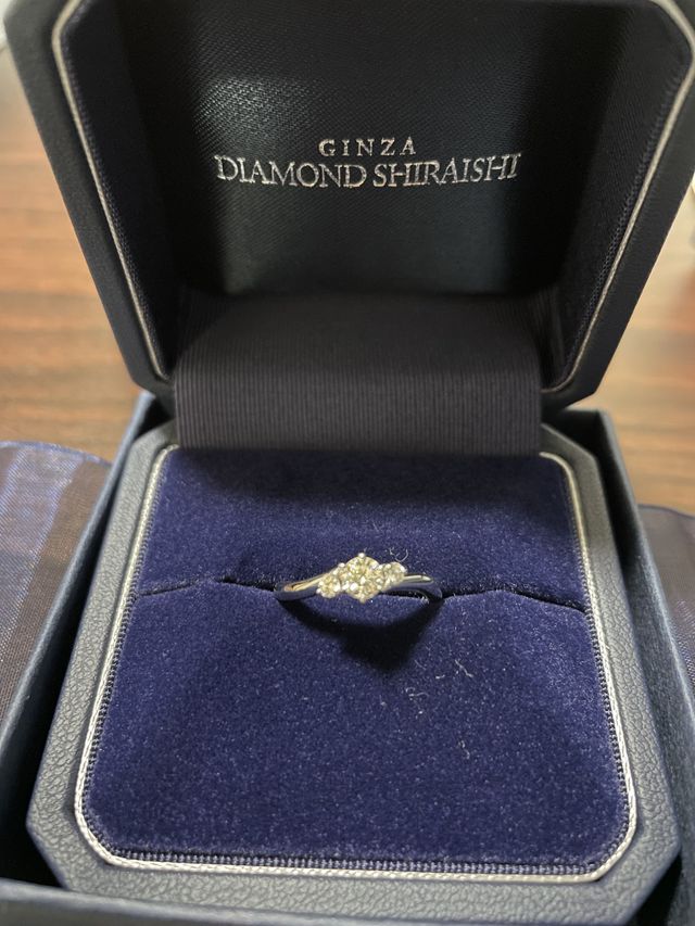 最初は一石のものを探していましたが、おすすめいただいた3石のタイプも見させていただいたところ、輝きが増して見えたのでこちらに決定しました。