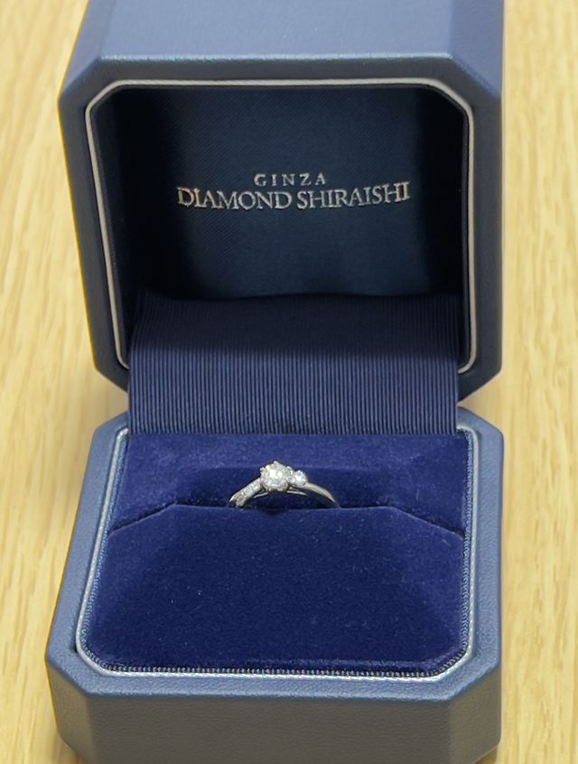銀座ダイヤモンドシライシさんは質にこだわっていてどれもすごく良いランクのものばかりで、実際にダイヤモンドの形をスコープで見せていただいて凄く綺麗だった。購入してからもメンテしてもらえるのでオススメです。