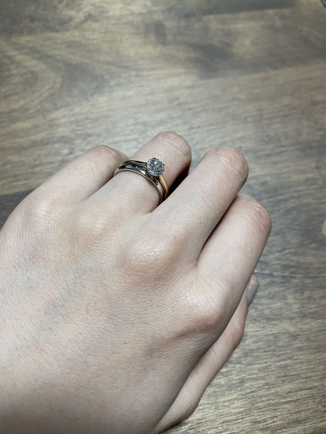 婚約指輪の方はデザインコンセプトが「Smiling」キラキラとした笑顔をイメージして造られていて、いつまでも笑顔を大切にして彼と一緒に過ごしたいと思い決めました。結婚指輪はなるべくシンプルな指輪を探していて、シンプルだけど少しカーブが入っている物にしました。