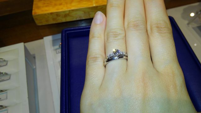 最終的にはデザインで決めました。結婚指輪と婚約指輪の間にあまり隙間ができない感じのデザインと結婚指輪に1粒のダイヤモンドをつけたのですが、付け方を選べるのがよかったです。ダイヤモンドも他店よりきれいな気がしました。