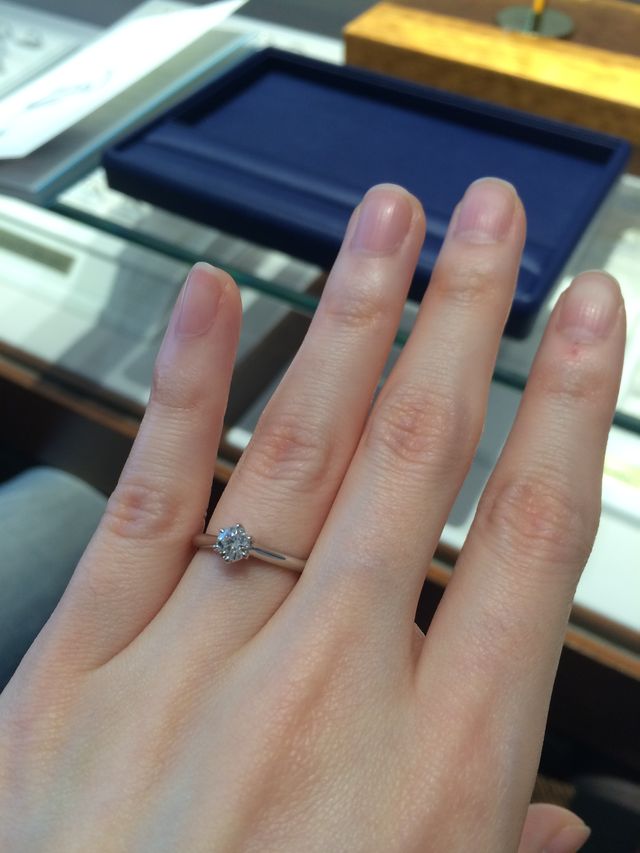 彼がひとりでダイヤを選んできてくれて、クリスマスにプロポーズしてくれました。翌日2人でリングを選びに行ったのですが、リングの意味や実際に自分の手につけてみた時に1番しっくりきたエバーアフターを選びました。
