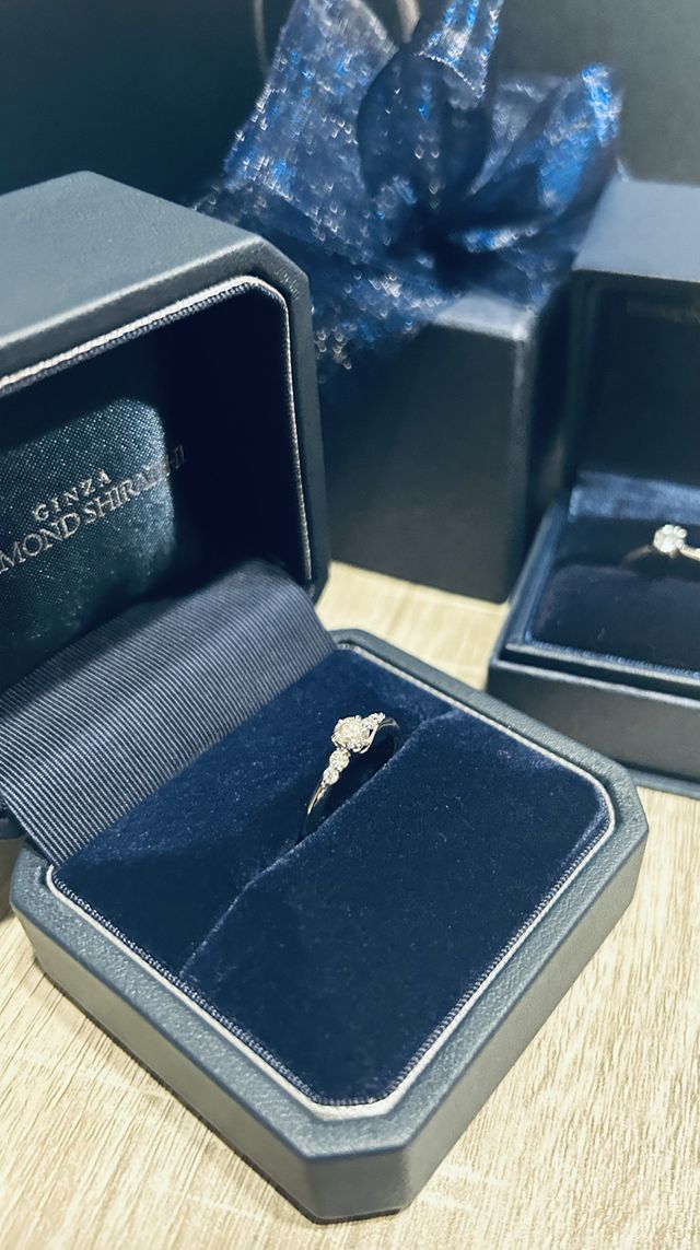 華やかで可愛らしいデザインでとても気に入っています!真ん中のダイヤが際立つようになっていてとても綺麗でみていて飽きません。大事にしようと思います。最終的に2つまで絞り、似合うと言われた方にしましたが後悔はありません。たくさんつけていきたいです。