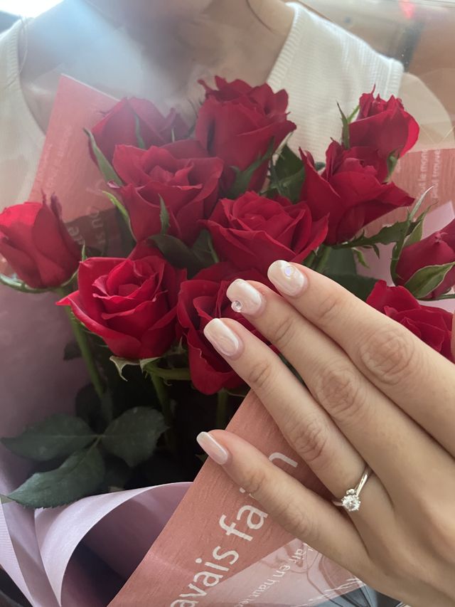 ダイヤモンドに近づくにつれてリングが細くなっていくデザインと、ダイヤモンドに高さがあるデザインを探していました。この二つを兼ね備えたデザインの指輪をずっと探していましたが、ようやく出会うことができました。