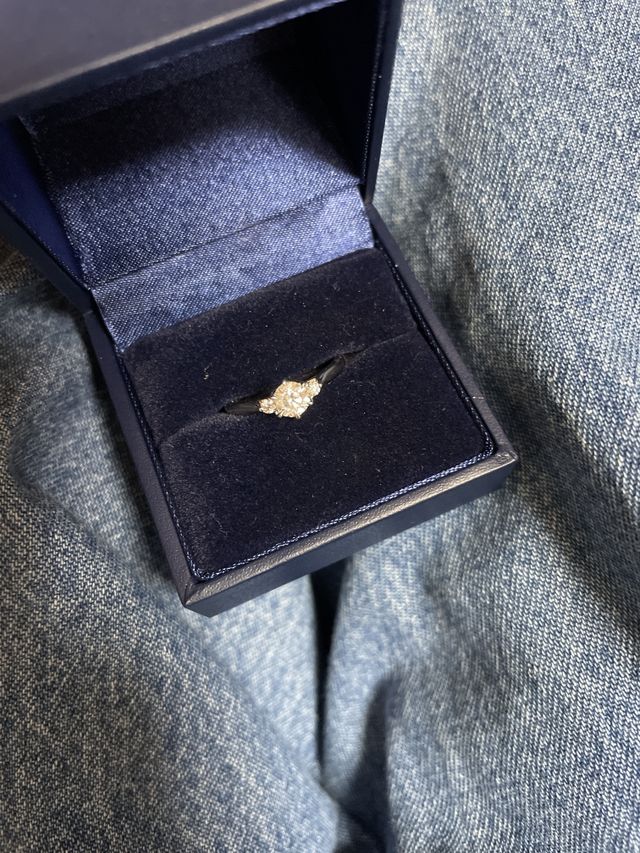 元々、プロポーズリングでもらったダイヤモンド。あまり婚約指輪は普段つけないイメージですが、私はせっかくもらったからぜひ日常でつけたいなと思っていました。重ね付けしやすく、さりげないのに両脇の小さなダイヤが指輪をゴージャスにしてくれていいなと思いました。