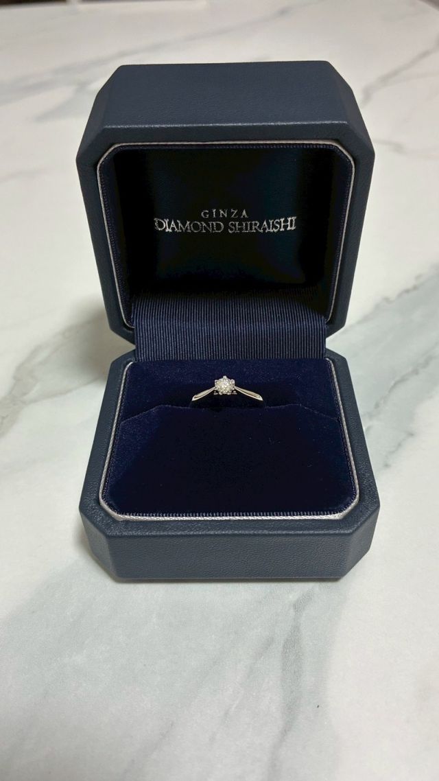 彼女の名前に花が付いているのでお花をイメージしたリングを選びました。Dランクのとても綺麗なダイヤモンドです。