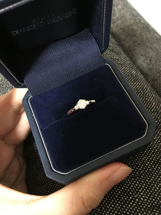 ダイヤモンドを一つ一つ比較しながら選び、枠も100種類ほどある中から選んで、こういったセミオーダーで作っていく過程でどんどん愛着が湧きました。正面だけでなく、横から見た形も可愛いらしかったので、こちらに決定しました。